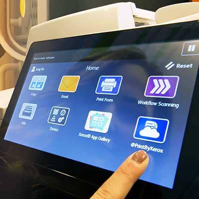 Xerox device interfaces are customizable to provide only the apps used most, including specific one-touch workflows to or from cloud or network locations.