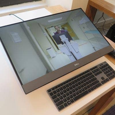 This all-in-one includes many of the features and capabilities of the OptiPlex 7460, but with a 27-inch display size. Dell says the thin bezel "InfinityEdge" design allows the OptiPlex 7760 AIO to have a size more akin to a 24-inch all-in-one. Differences from the smaller version include an option for a UHD/4K screen (3,840 x 2,160 resolution, non-touch) with an anti-glare coating, in addition to the FHD configuration (touch or non-touch). The OptiPlex 7760 features an articulating stand so that the display can be adjusted to lay nearly flat.