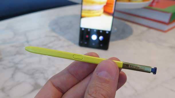 Samsung says that fans of the Galaxy Note series have long used the S Pen for more than just note-taking. Navigation, such as by opening apps with the stylus, has been another big use case. That gave Samsung the idea to build more functionality into the S Pen for the Note9 release, executives said in briefings with reporters this week. The new version of the S Pen connects to the Note9 over Bluetooth, and the button on the S Pen can now be used to open apps and take certain actions within apps. For instance, you can take a photo or move forward a slide in PowerPoint with a press of the button. The default setting is for the S Pen to open the camera by holding down on the button, but users can customize how the button is used, executives said. While just a few apps work with the S Pen button to start -- including the camera, voice recorder and PowerPoint -- Samsung plans to open up its SDK in September so that developers can enable more apps to work with the S Pen button. Additionally, Samsung said that the S Pen re-charges while stored inside the phone, and can fully charge up within 40 seconds.