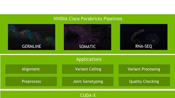 Nvidia Clara Parabricks is an application framework designed to take advantage of GPU acceleration for genome sequencing analysis.