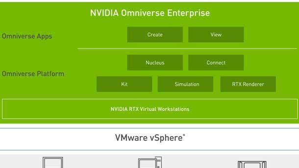 Nvidia Omniverse Enterprise is collaboration platform that allows 3-D design teams to work together on the same files in real time across multiple software suites from companies like Adobe and Autodesk, whether on workstations or virtual workstations.