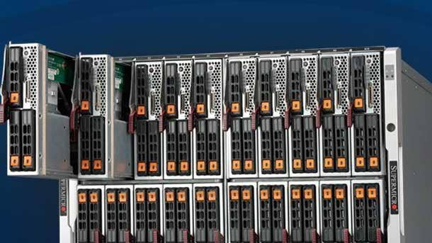 Supermicro’s SuperBlade includes advanced networking such as HDR/EDR, InfiniBand and up to four 25 Gigabit Ethernet switches with add-on cards. The SuperBlade has up to 2 NVMe with optional mezzanine 4x NVMe per blade and can support up to 20x 1-socket or 2-socket blade servers or up to 10x 4-socket blade servers.