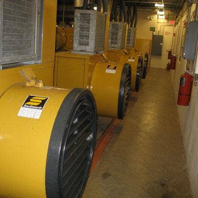 The diesel generators rest atop four feet of concrete to cushion the noise. If the generators click on, most of the outside world would only hear a slight hum, if anything at all, due to their ability to absorb sound and vibration.