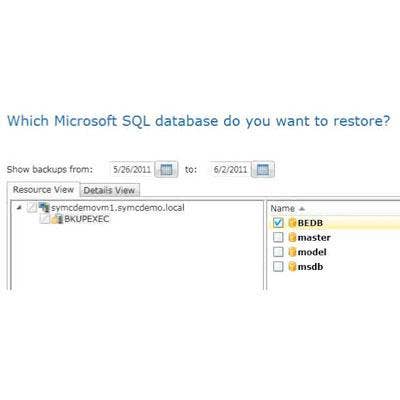 It's obvious that Symantec put tremendous effort into simplifying the restoration process, particularly for specific types of application data. The Restore wizard presents for selection only the types of data that have previously backed up on that server. And if restoring Microsoft SQL Server databases, for example, Backup Exec 2012 offers to restore only databases that have been backed up. Additional restore options are presented in accordance with the type of data being restored to help administrators zero in on the correct data.