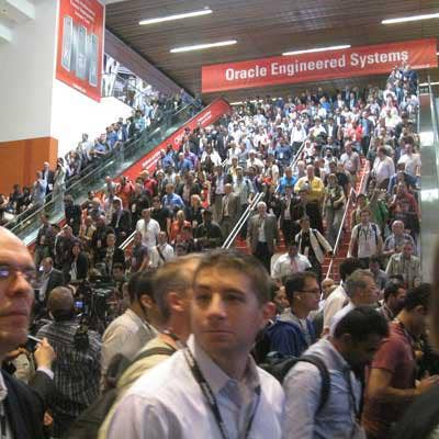 This intrepid reporter, thinking to beat the crowds into Ellison's Sunday night opening keynote, got in line almost a half-hour early.