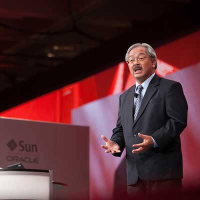 Despite the traffic and other issues related to hosting one of the world's most important conferences, Ed Lee, mayor of San Francisco, took the stage before Oracle CEO Larry Ellison's keynote to thank Oracle for hosting the event in the city.