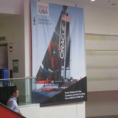 Oracle was optimistic Oracle Team USA would win the America's Cup. So optimistic, in fact, that it had several huge posters and banners printed and ready to go immediately after the final race was finished.