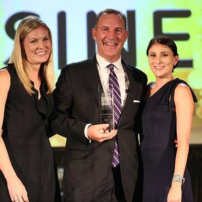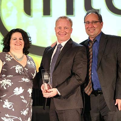 Craig Schlagbaum, Comcast Business's vice president of indirect channels, accepted the award from Sarah Kuranda, CRN senior editor for security, and Gina Narcisi, CRN senior associate editor for communication service providers.