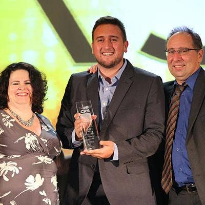 Nathan McCready, RSA's channel sales manager, accepted the award from Burke and Jennifer Follett, CRN's executive editor.