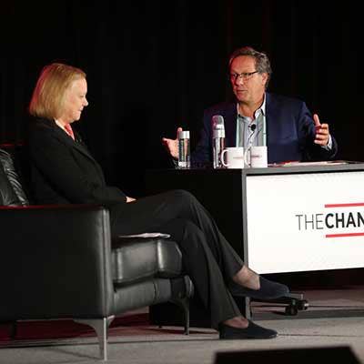 The interview, which also included questions from solution providers in the audience, also touched on whether Whitman would consider a presidential run. Edited excerpts of the conversation follow.