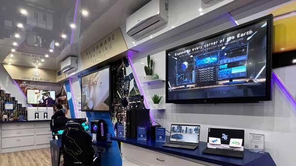 People who enter the large mobile vehicle get a spacious area to actually touch, feel and interact with Dell’s products when they enter the large mobile vehicle that’s full of wall-to-wall Dell solutions.