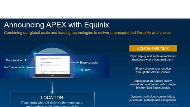 At Dell Technologies World, Dell announced an expanded collaboration with global colocation data center giant Equinix to broaden the availability of Apex.