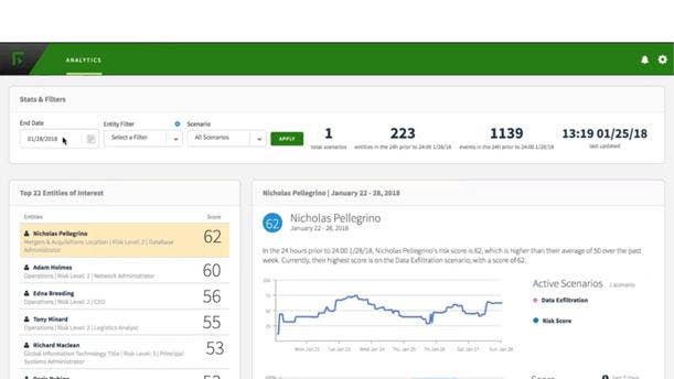After setting a baseline for normal behavior, Exabeam’s Entity Analytics solution analyzes activity in device logs—with an eye toward uncovering suspicious behavior—and then presents security administrators with “watch lists” that enable them to isolate the problem or reconfigure the network if necessary.