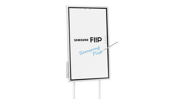 Samsung has charged into the booming market for large-format interactive conferencing displays with the debut of the Samsung Flip. The Flip is a 55-inch digital whiteboard aimed at improved workplace collaboration. One key differentiator is the ability to use the Samsung Flip either in the typical landscape mode or flipped to stand up in portrait mode. The display can be used as a digital flipchart for colleagues to use for drawing and writing notes, either with a digital pen or their finger. The Samsung Flip also comes with screen-sharing capabilities so that team members can remotely take part in meetings where the Flip is in use.