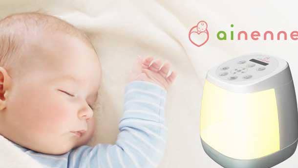 Ainenne is a bedside lamp that serves as a sleep trainer for babies. The device analyzes cry patterns to determine sleep patterns — which can be visualized in a companion smartphone app — and then makes recommendations on the optimal time to wake the baby. During the wake-up period, the built-in LED lamp slowly increases in intensity to simulate natural morning light, and it can also generate white noise during sleep cycles. Details on pricing and availability were not available.