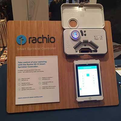 With Rachio's smart sprinkler controller, which the company showed off at CES, homeowners can automate their backyard watering systems through their smartphones.