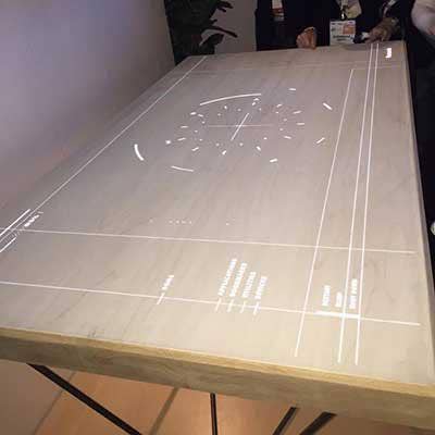 This interactive wooden table enables users to view content on its surface, and heats or cools drinks or food. The table features integrated wireless device charging and syncing capabilities and multiple infrared range sensors and cameras -- all backed by a proprietary operating system. Panasonic's Smart Table is still in the prototype stage.