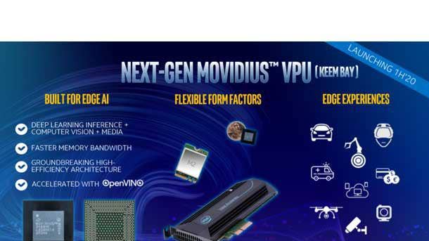 Intel revealed its next-generation Movidius Myriad visual processing unit last fall as a game changer for providing high-performance machine vision in power- and size-constrained devices. The chip comes with a dedicated neural compute engine, 16 programmable VLIW vector processors and a hardware-based encode that enables up to a 4K video resolution. At the time of the reveal, the chipmaker said the VPU would provide 10 times the inference performance over the previous generation and six times the power efficiency of competing processors. For instance, the company said the Movidius VPU provides four times better performance than Nvidia's TX2 chip and performance that is on par with Nvidia's Xavier chip at one-fifth the power. The chip is expected to launch this year.