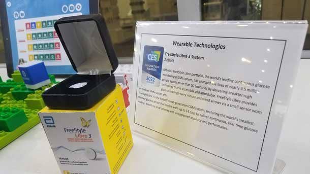 Health care technology company Abbott Laboratories showcased its Libre 3 System at CES 2022. The next generation of the company’s continuous glucose monitoring system is small, thin and can be worn for up to 14 days.