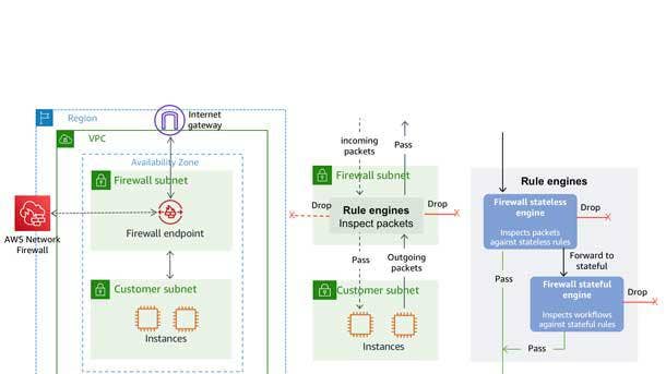 The managed security service, introduced in November, allows users to filter traffic at the perimeter of their VPCs, including traffic coming and going from an internet gateway, network address translation gateway or over a virtual private network or AWS Direct Connect. It uses Suricata, the open-source intrusion prevention system for stateful inspection, and supports Suricata-compatible rules.