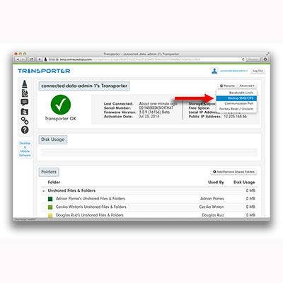 The Transporter Desktop agent starts automatically by default and continuously attempts to connect to and sync with the Transporter unless user preferences instruct it to do otherwise. Alerts appear when new files are available following a sync; clicking on an alert will optionally open the file or its containing folder. To share a file, simply right-click to generate and copy a link to the clipboard. Then paste into an email. The recipient can retrieve the file through a browser screen and need not have a Transporter account. Files also are accessible via apps for Android and for iOS.