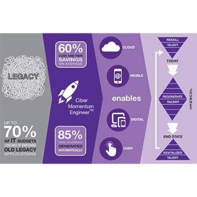 Momentum can automatically translate code from legacy languages such as COBOL, JSP, XML or Java to the cloud-enabled .NET framework, leaving only complex business logic to be done manually. Momentum can fully convert apps from legacy to modern languages in six to eight weeks, according to Ciber.