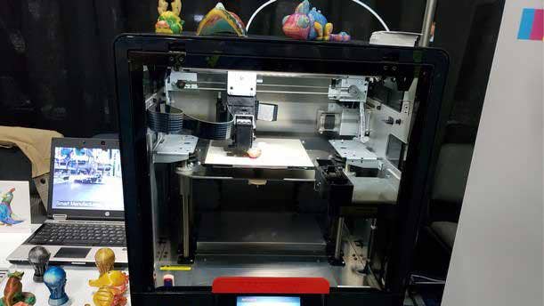 XYZ Printing showed off its new full-color 3-D printer at CES 2019, the Da Vinci Color Mini, which aims to print high-quality color objects for prototype makers. The Da Vinci Color Mini combines newly developed 2-D inkjet color printing technology with 3-D printing technology, applying CMY ink to a color-absorbing PLA filament as a way to offer "millions of color combinations," XYZ printing said. The 3-D printer offers layer resolution of 100 to 400 microns and a maximum build area of 5.1 x 5.1 x 5.1 inches, and weighs 52.9 pounds for easier portability. XYZ Printing is pitching the Da Vinci Color Mini as a solution for small businesses that up until now haven't had access to high-quality 3-D printing technology.