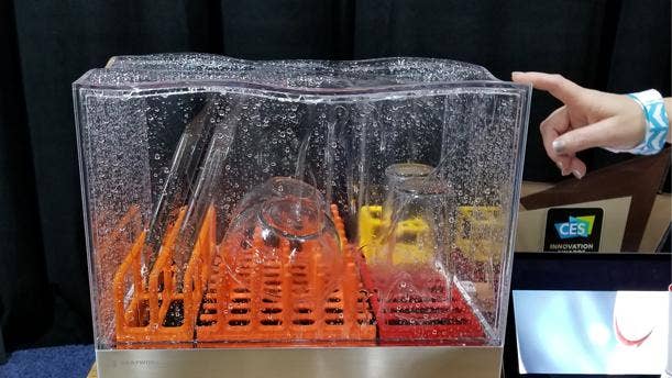 The Tetra is a compact dishwasher from Heatworks that can clean dishes within a matter of minutes using just a gallon of water. The dishwasher has its own water reservoir, meaning that no plumbing is required for the appliance. The appliance relies on Heatworks' patented Ohmic Array Technology, which uses graphite electrodes and advanced electronic controls to instantly heat the water, avoiding rust problems that can occur in metal heating rods found in traditional plumbing systems. The Tetra is expected to be available in the second quarter of 2019 for $399.