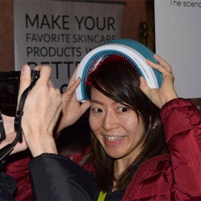 One of our favorites was a product called HairMax LaserBand. This $700 headband is designed to promote hair growth via the laser beams that stimulate hair follicles to grow. The FDA-cleared LaserBand requires 90-second treatments in order to reduce thinning hair by stimulating growth in a receding hairline.
