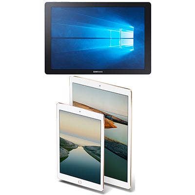 As mentioned, Samsung's Galaxy TabPro S is a Windows 10 device -- meaning that operating system is preloaded. Whether you should even be considering an iPad Pro will depend on whether Apple's OS is going to be permissible for work purposes. "If you're just popping your email and opening Microsoft-based documents, in my opinion the iPad Pro is probably just as useful" as the TabPro S would be, said DMI's Wagner. But if you're in a field that requires behind-the-firewall integration for applications that are only available on the Windows platform, that "shuts the door down" on using the iPad Pro for you, he said. That's why Samsung's move to embrace Windows 10 after a history of focusing on Android is such a big deal for the company's push into the enterprise, Wagner said.