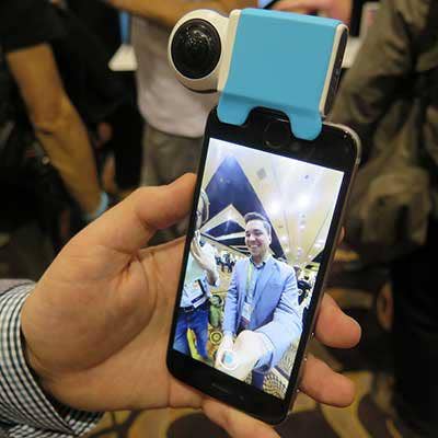 The Giroptic iO is a 360-degree camera that connects to iPhones or iPadsr to provide easier capturing and sharing of 360-degree images and video.