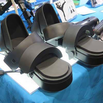 The shoes include haptic sensors and provide feedback to users based on what they're doing in a VR world; for instance, a user might feel the sensation of walking on snow or of kicking an enemy with their foot. Taclim is being developed to work with major VR headsets including Oculus, HTC Vive and Playstation VR.