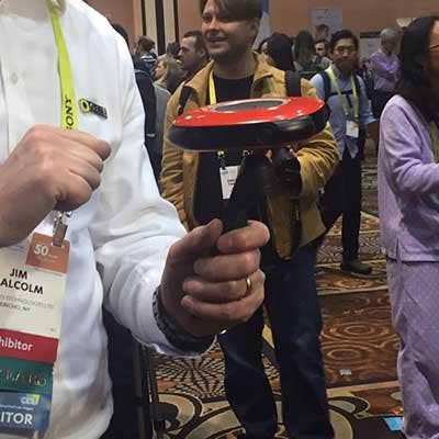 Members of the Leti team, including lab manager Pierre Jallon (pictured), were showing off a demonstration version of the device during CES Unveiled. Details on a commercial version have not been finalized.