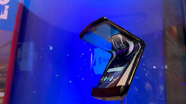 The reboot of the famous Motorola Razr features a 6.2-inch OLED display that folds top to bottom. The device also includes an interactive "Quick View" display on the cover when the device is closed, which can be used to check notifications. The view switches to the main display when the phone is unfolded.