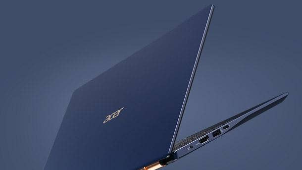Acer's Swift 5 notebook differentiates itself in the crowded laptop market with surprising portability for a 14-inch laptop, with a weight of just 2.1 pounds and a thickness of 0.6 of an inch. The device still offers durability, however, with its magnesium-lithium body.