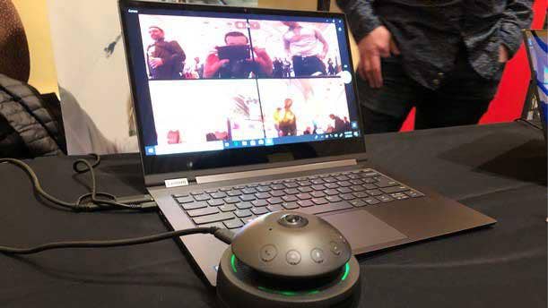 Along with PCs and monitors for businesses, major vendors used CES 2019 to introduce innovations in the realm of workplace collaboration. Lenovo's new VoIP 360 Camera Speaker (pictured) aims to enable videoconferencing for small meetings or for users who are on the go, with acoustic echo cancellation, reduced background noise, 360-degree videoconferencing and a compact form factor. Jabra introduced its Elite 85h headphones featuring six microphones for improved calls and up to 32 hours of battery life. Lume Cube announced the Lume Cube AIR VC, a compact portable light that offers 1,000 lumens worth of brightness for a more vibrant picture during videoconferencing. And Dell announced that the refreshed XPS 13 for 2019 will finally move the notebook's webcam from beneath the display to a position centered above the display for an improved angle during videoconferencing.