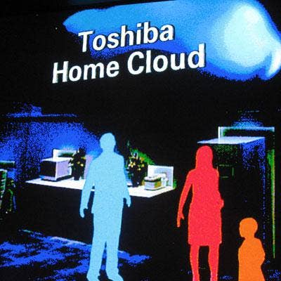 By connecting almost any in-home appliance to the cloud, Toshiba's Home Cloud solution affords users maximum control over their homes and energy costs, along with a simpler way to stay in touch with friends and family. A TV, for instance, that's connected to Toshiba's Home Cloud can be used to send show recommendations or comments to other viewers, regardless of their location. Toshiba also demonstrated a "smart" refrigerator with a built-in tablet that can be used to chat with friends and families while making dinner.