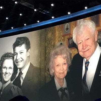 Bahr was ending her presentation when she put up a photo of her grandparents Ned and Rebecca Young. Ned, 96, and Rebecca, 94, have been married for 77 years. On their 75th wedding anniversary, Bahr said, she asked her grandmother how they stayed together so long.