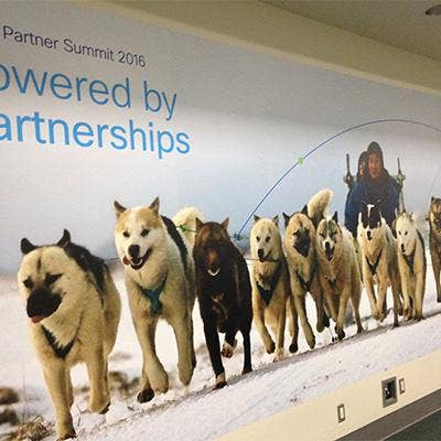 Large images illustrating the theme of the event -- "Powered by Partnerships" -- covered the San Diego Convention Center. The theme represents Cisco's push for channel partners to begin or enhance relationships with other solution providers and ecosystem partners.