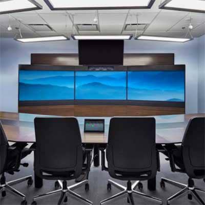 The Immersive Studio Flex solution consists of high-definition audio along with an 18-foot video wall made up of three 4K UltraHD display screens. The meeting room solution supports content sharing as well as Microsoft Skype for Business functionality.