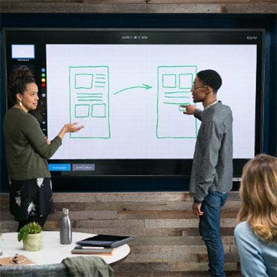 Prysm Go is available in two versions. The all-in-one version features the Prysm application appliance, an 85-inch 4K LCD display, and an option to sign up for a free trial of the Prysm Application Suite for interactive meetings. The second version uses Prysm Go along with existing hardware, which includes the Prysm application appliance and the free trial of the Prysm Application Suite.