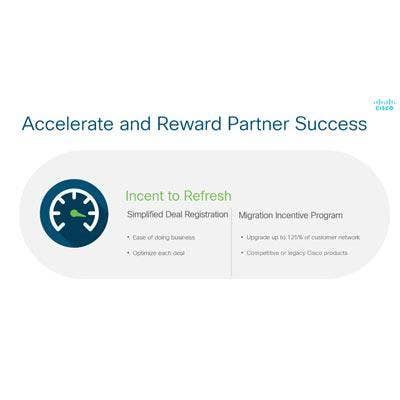 Another new incentive program is VIP Activation that adds back-end rebates for Cisco ONE and Digital Network Architecture (DNA) Advantage suites, as well as for Cisco Identity Services Engines (ISE) and Cisco Stealthwatch. The program is meant to incentivize partners to activate software in a customer's environment.
