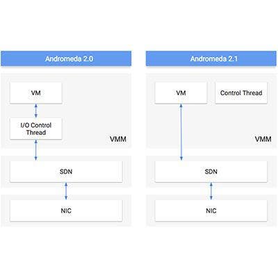 In November, Google unleashed a new version of its software-defined networking stack Andromeda which significantly speeds up network performance on Google's cloud platform. Andromeda 2.1 reduces latency between virtual machines on Google's platform by 40 percent compared with its previous Andromeda stack and by a factor of eight over the original 2014 version. Andromeda is the SDN technology that underpins Google's cloud. The solution enables software-defined control over various Google cloud components including routers, switches, operating systems and hypervisors.