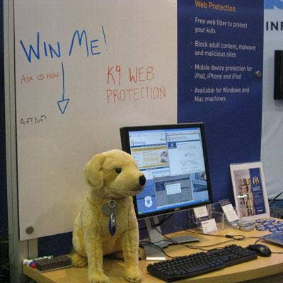 Dogs probably won't do much to protect the network, but security player Blue Coat was offering up this stuffed dog as an extra line of defense.