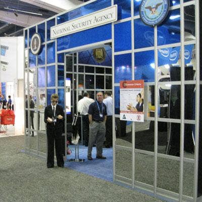 The National Security Agency's booth was a secure zone, even flanked by aviator-wearing guards.