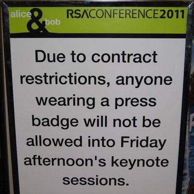 Former President Bill Clinton barred the media from his RSA keynote address, which was scheduled for Friday. According to this sign that showed up in the press room, Clinton's contract barred the press from attending.