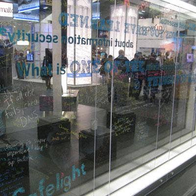While it might be difficult to see, Safelight put up this glass and asked attendees to write down what they've learned about information security. Among our favorites: "Security is NOT a sticky note under your keyboard."