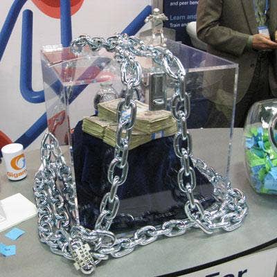 It may not be the most advanced security, but this chain and lock appeared to be enough to keep this stack of cash out of the hands of evildoers.