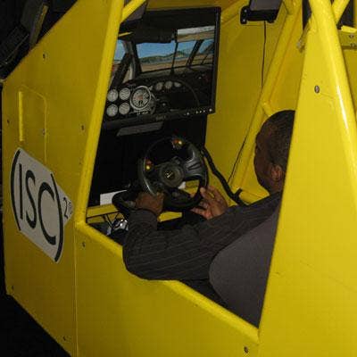 At the (ISC)2 (International Information Systems Security Certification Consortium) booth, the security education and certification crew broke out these racing games, offering prizes to daily winners. Here, an RSA attendee gets comfortable behind the wheel.