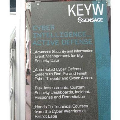 At RSA 2013, security vendor Sensage flogged its SIEM and big data security offerings and, as evidenced here, attempted to pack as many "cyber" references as possible into a single piece of show floor signage.